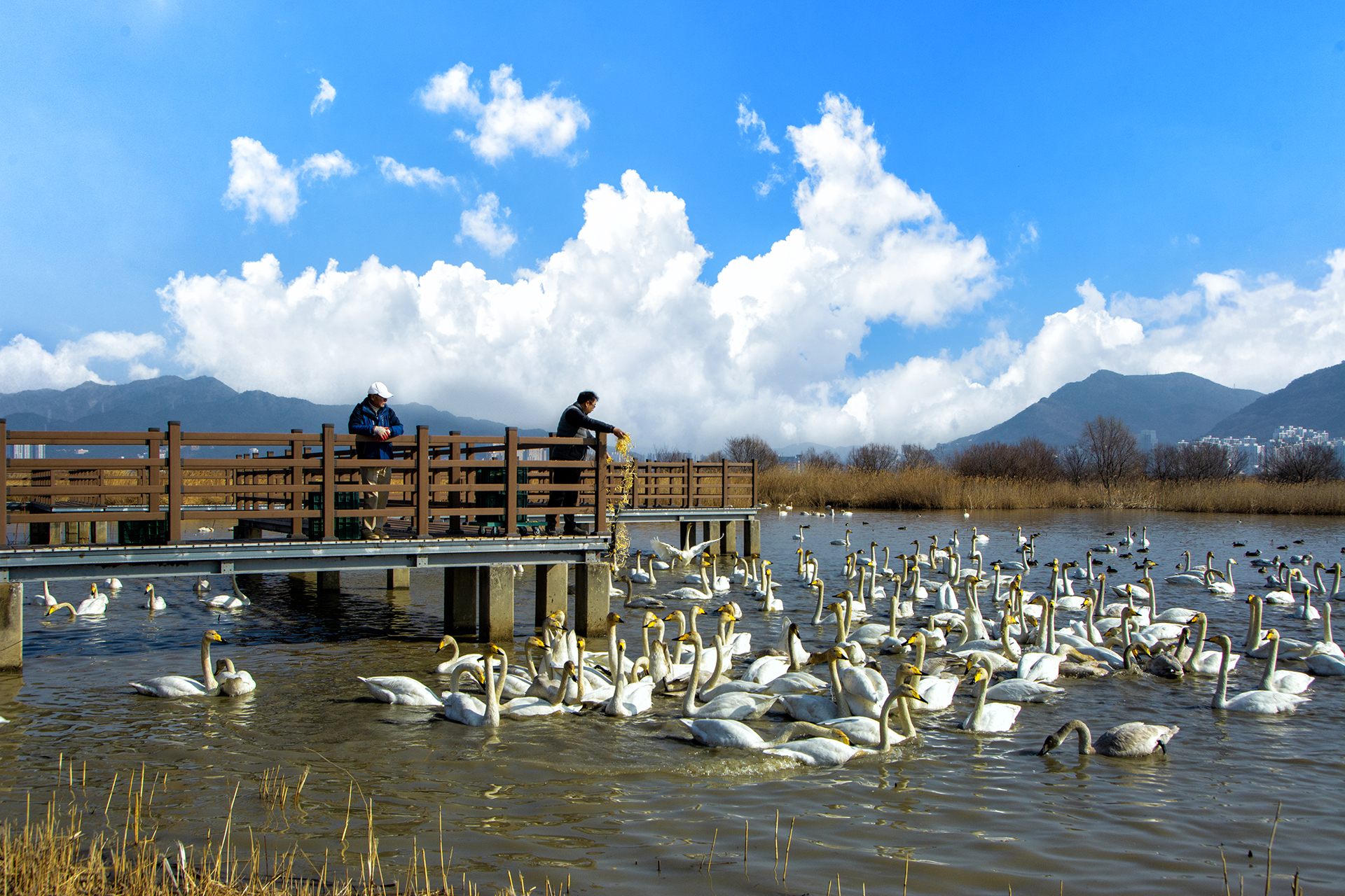 - 주요 서식종: 주로 큰고니가 관찰됩니다. 큰고니는 천연기념물 제201-2호이자 멸종위기 야생생물 Ⅱ급으로 지정되어 보호받고 있습니다.